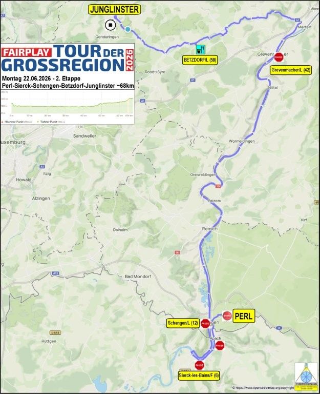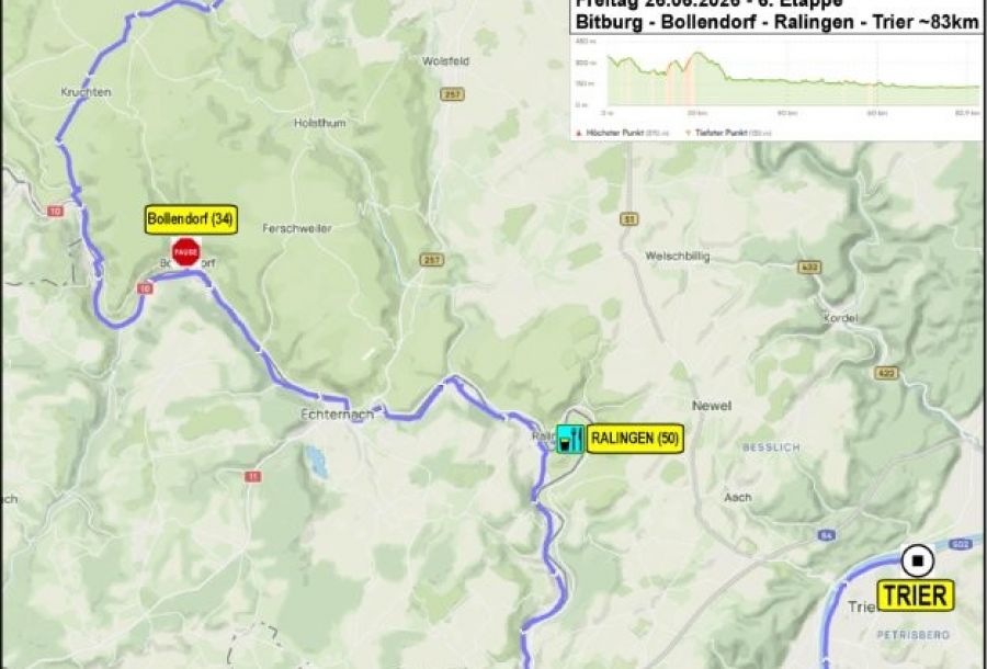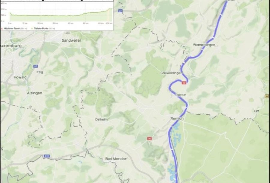 PERL * Apach * Sierck-les-Bains * Schengen * Betzdorf * JUNGLINSTER (68 km, 560 hm)
