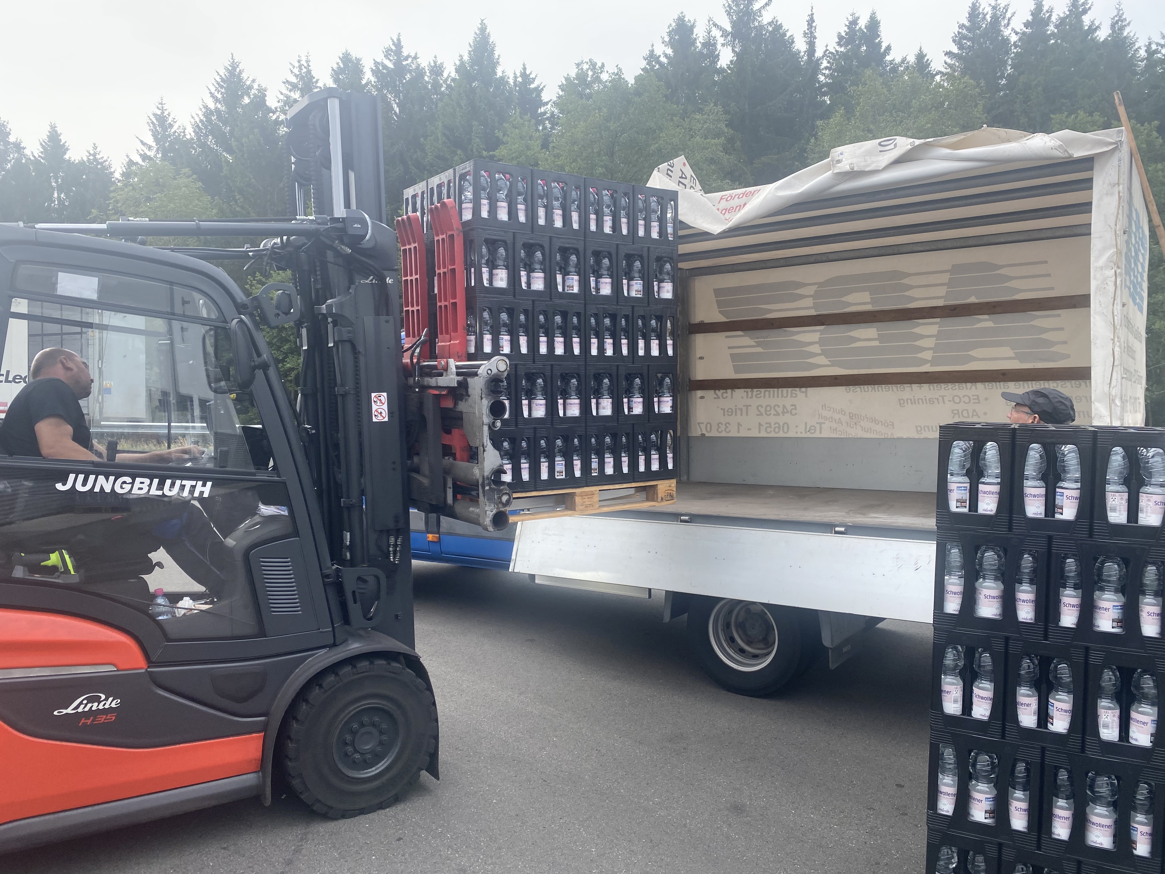 Die ersten Warenlieferungen trudeln ein, die Kühlwagen und der ABZ - LKW für den Taschentransport sind schon unterwegs. Morgen fährt Jürgen, unser LKW-Mann für alle Fälle nach Schwollen, um 1600 Liter Wasser in PET - Flaschen abzuholen. Herzlichen Dank an die Familie Frühauf und unseren V-Mann Thorsten Barz von Schwollener für mittlerweile 4 Jahre Versorgung mit bestem Hunsrücker Wasser.